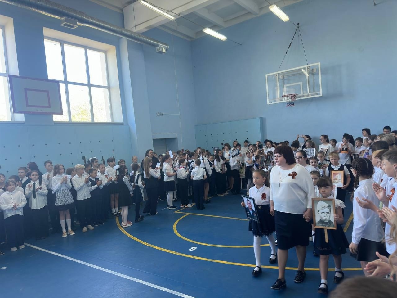 Школьники с гордостью пронесли портреты своих близких, участников Великой Отечественной войны.